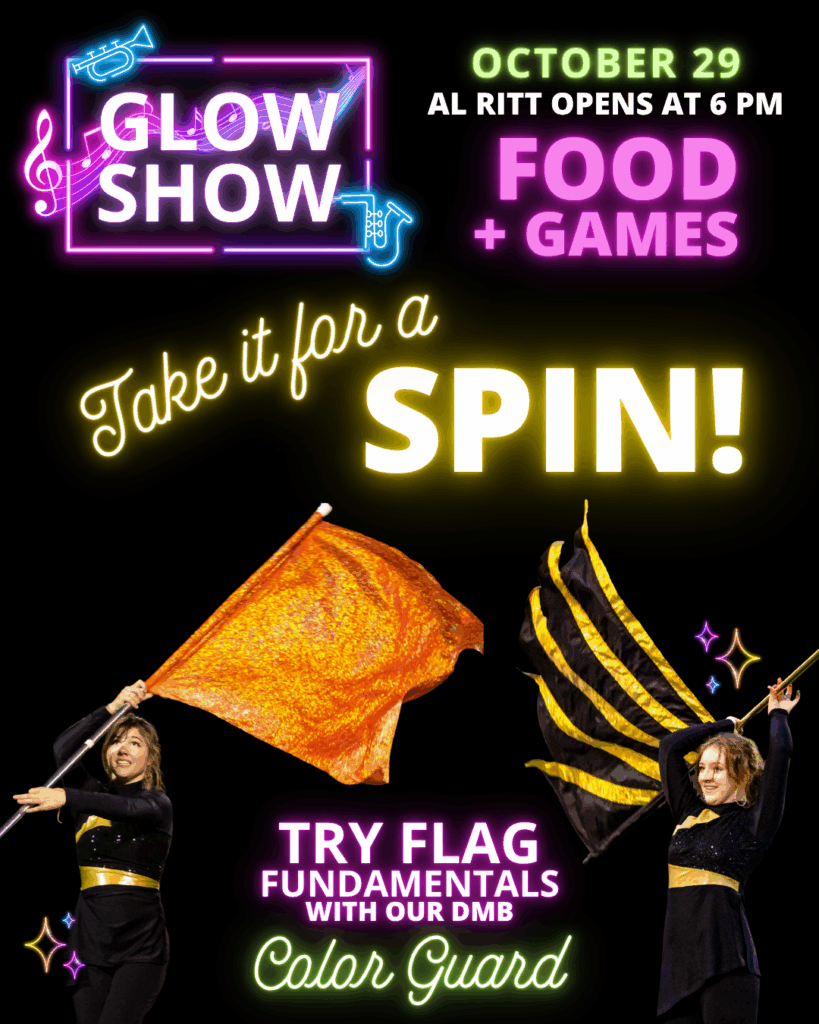 Guests will want to be arrive before dark to play yard games on the field hosted by DHS Band students. Give it a Twirl: Meet our Dreadnaught Marching Band Twirlers and learn baton basics! Our Color Guard will also let you take a flag for a spin! Dexter Bakery will once again sponsor our “Donut Dance” where participants can win a free donut in this cake walk style game!